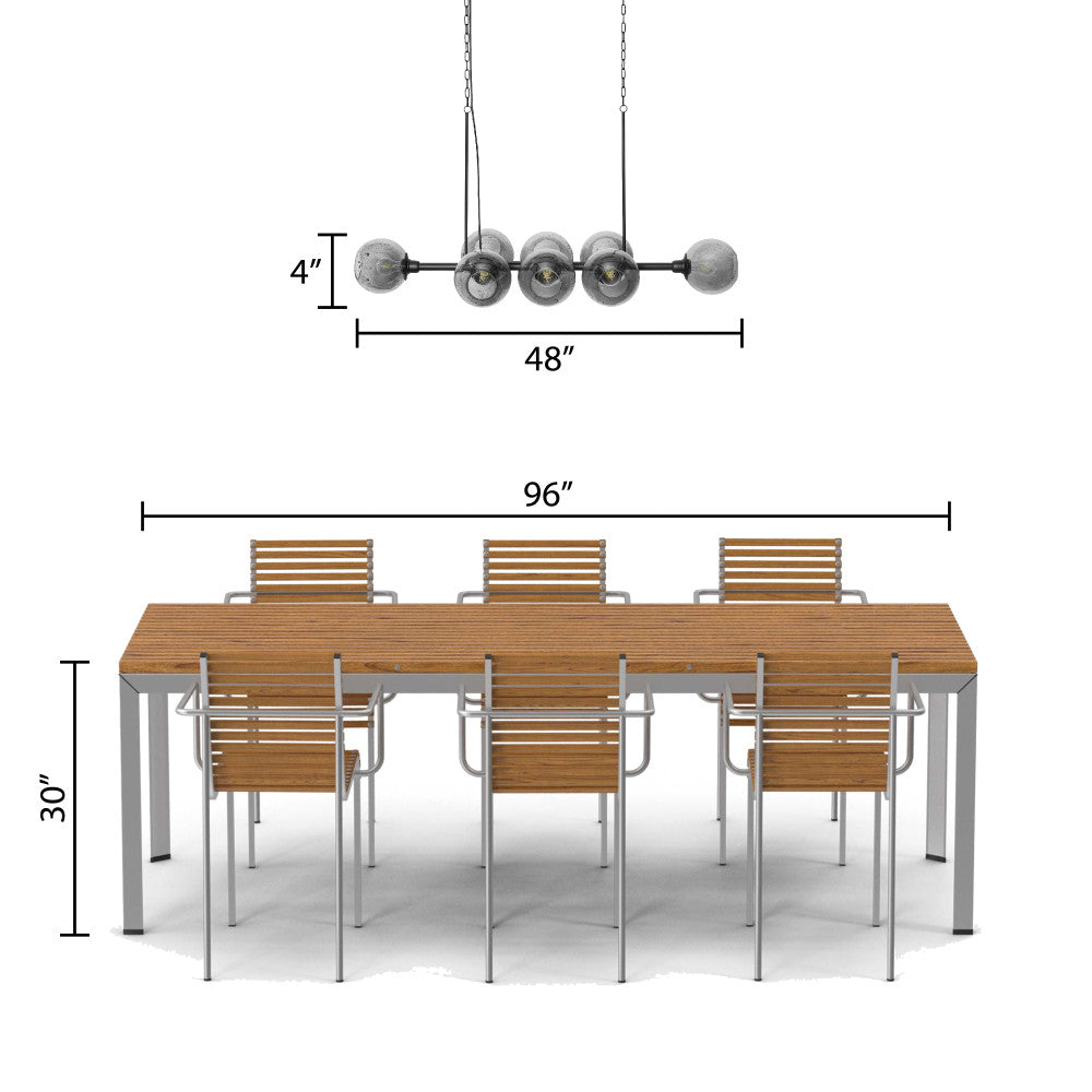 48" L 8-Light Degas Black Metal and Smoked Glass Chandelier