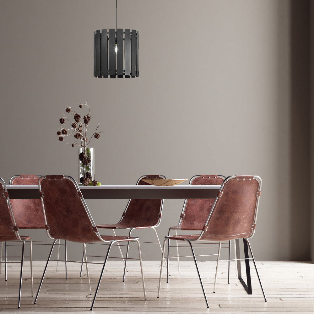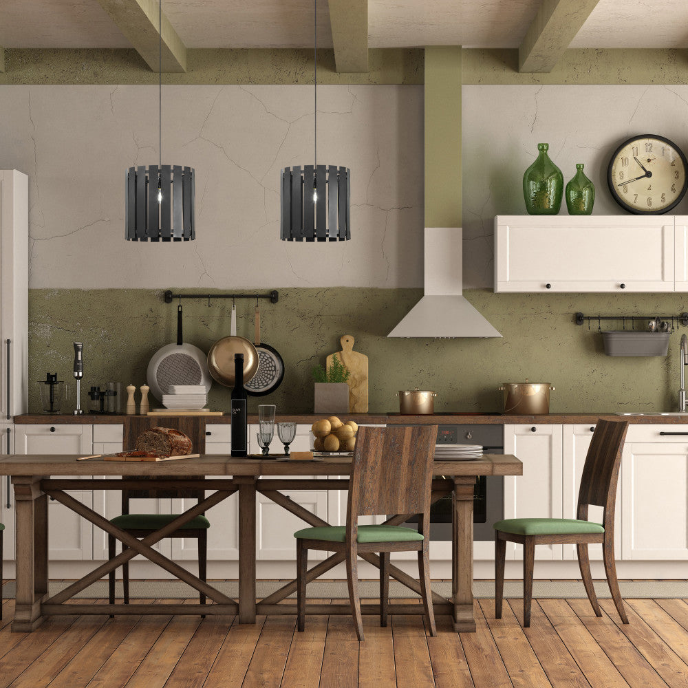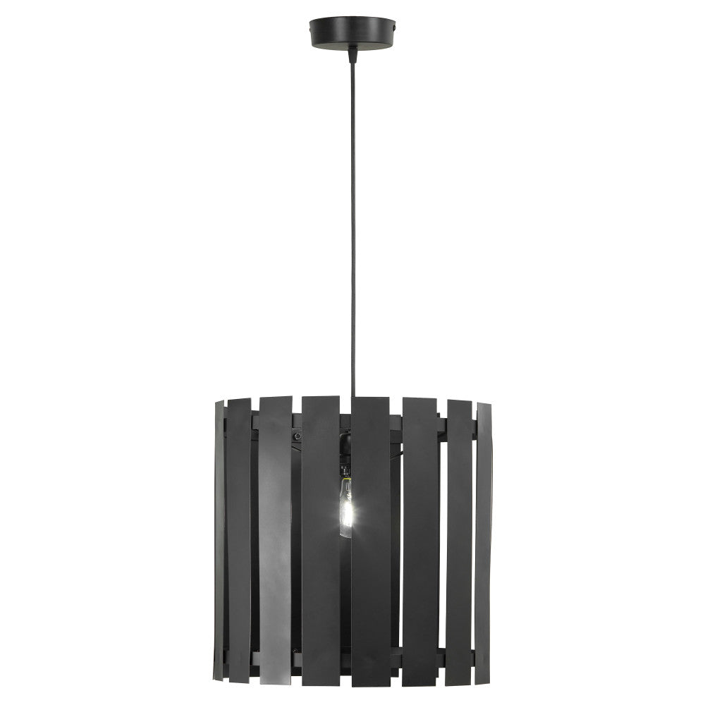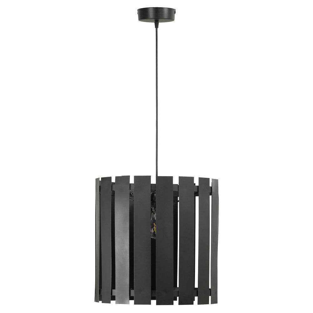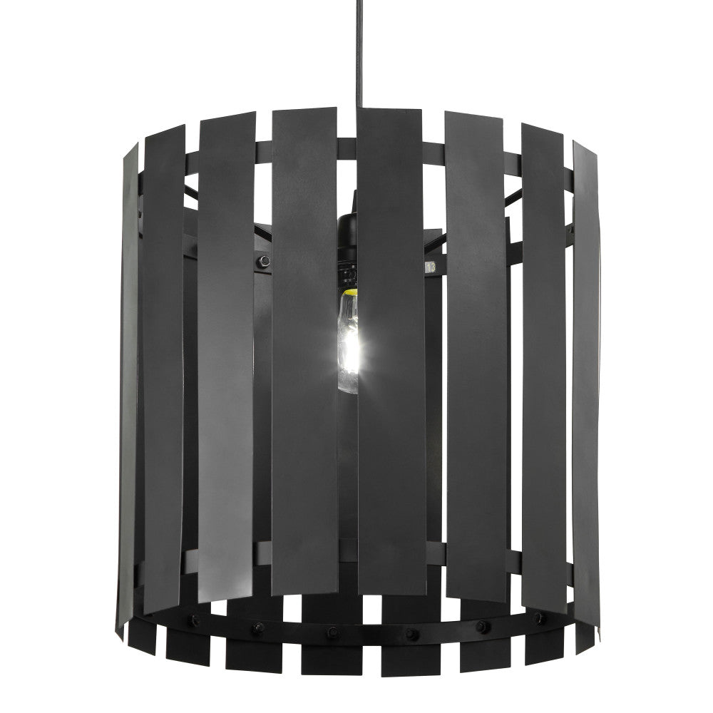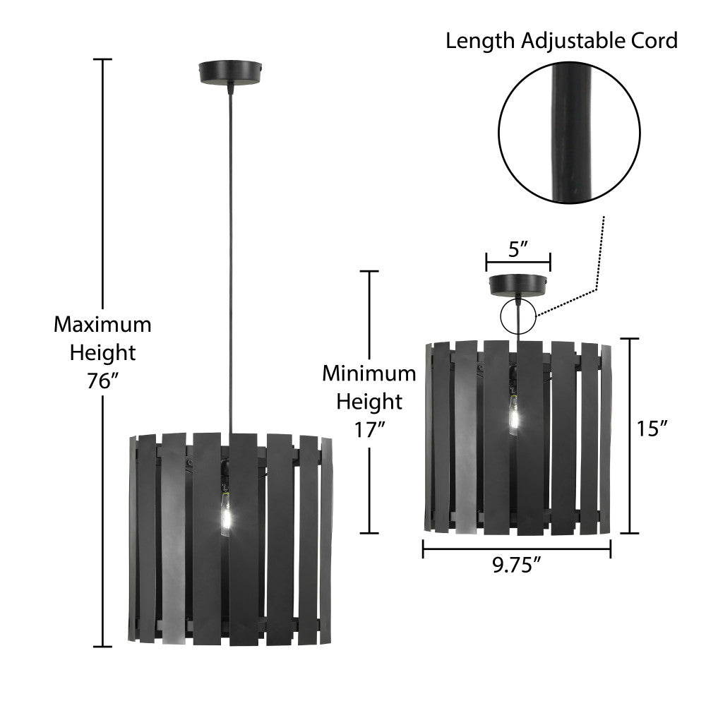 Your lighting will be anything but boring with this cool hardwired hanging pendant light. Designed with a black-finish metal canopy and a black slatted metal drum shade, it lights the room with the help of one 40-watt Type A bulb (not included). A perfect pairing with modern or industrial-style decor, it also features an adjustable hanging cord that lets you set the drop height between 17 inches and 76 inches to best fit your space.