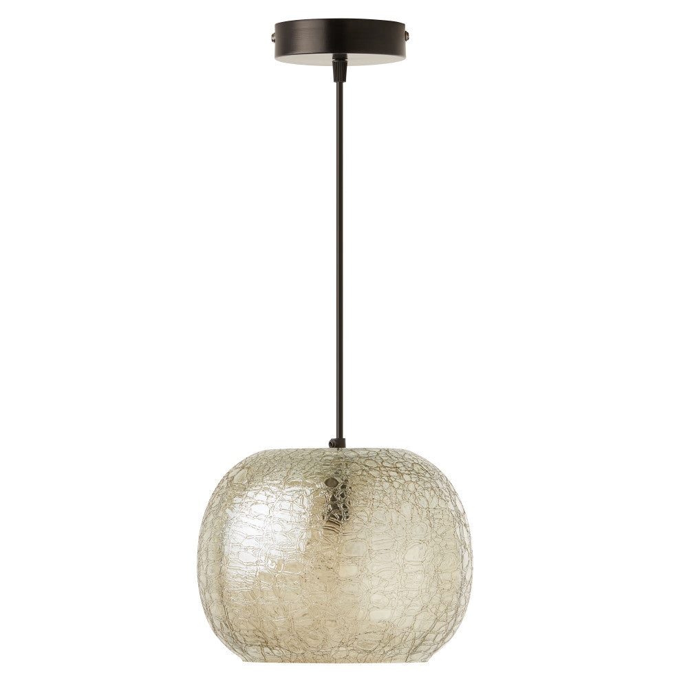 This stunning pendant light will become the new focal point of any room. The black canopy complements the subtle green luster hand-blown glass globe shade, creating an eye-catching contrast. The light is directed downwards, making it perfect for illuminating a dining table or a kitchen island. The height of the pendant light is adjustable, allowing you to customize it to your space. The pendant light is compatible with Incandescent, CFL, and LED type B bulbs (not included), ensuring versatile lighting options. The handcrafted nature of this product creates slight variations in texture, adding a unique touch to your decor.