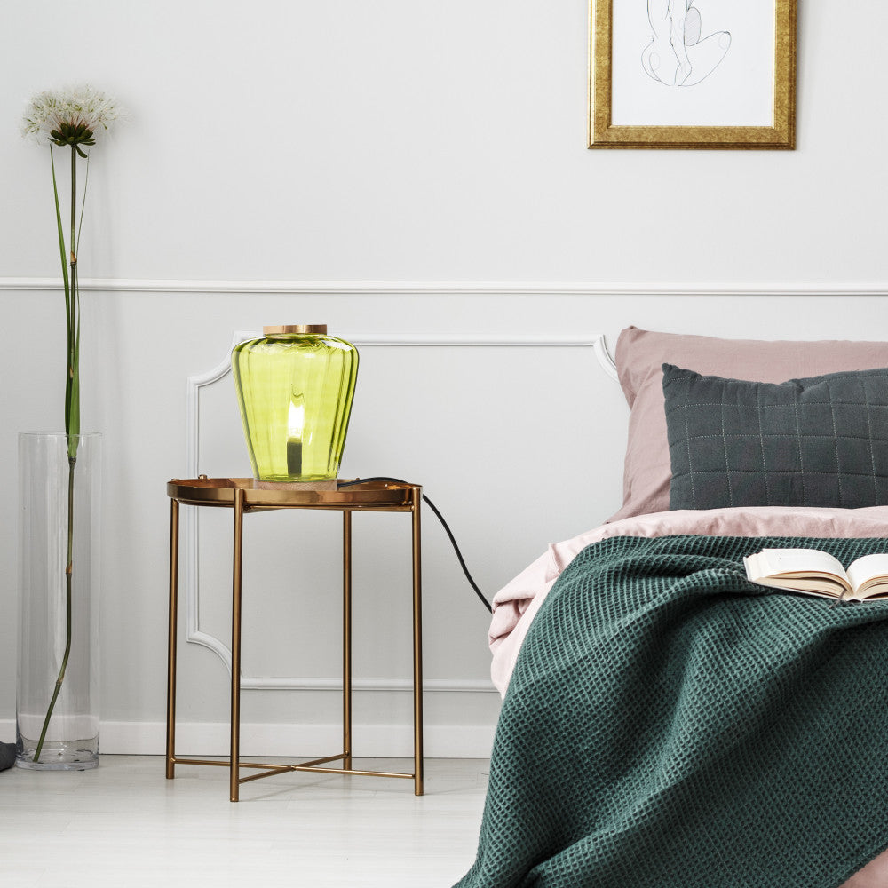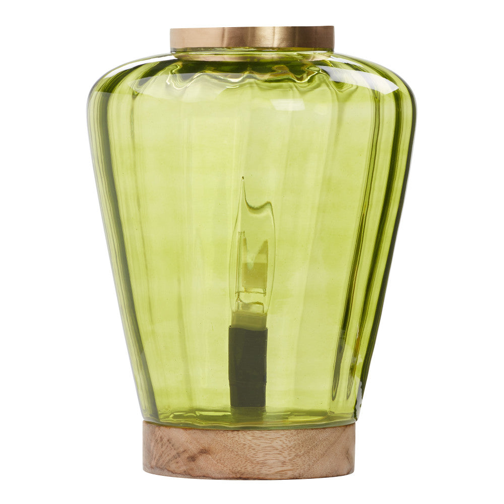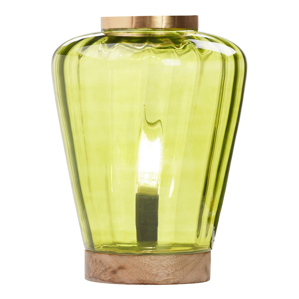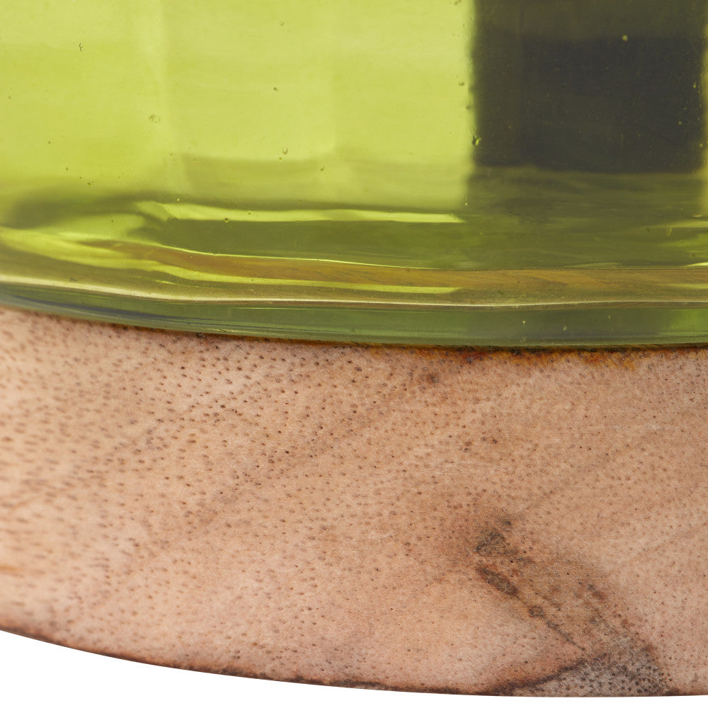 10.5" H Lila Chartreuse Green Glass Shade with a Mango Wood Block Base Accent Lamp