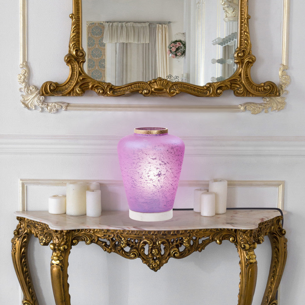 10.5" H Lila Pink/Purple Glass Shade with a White Marble Block Base Accent Lamp
