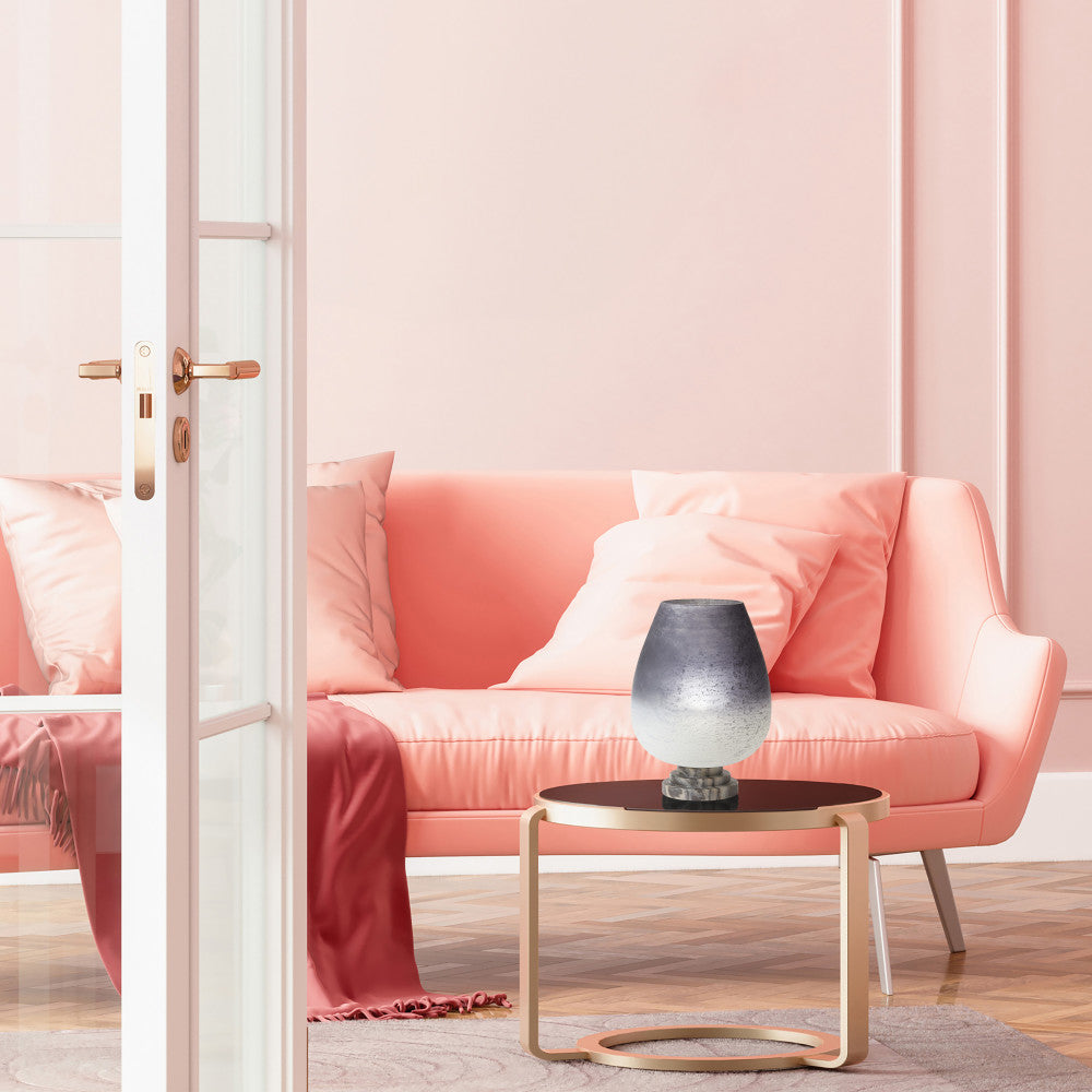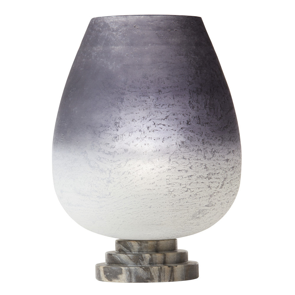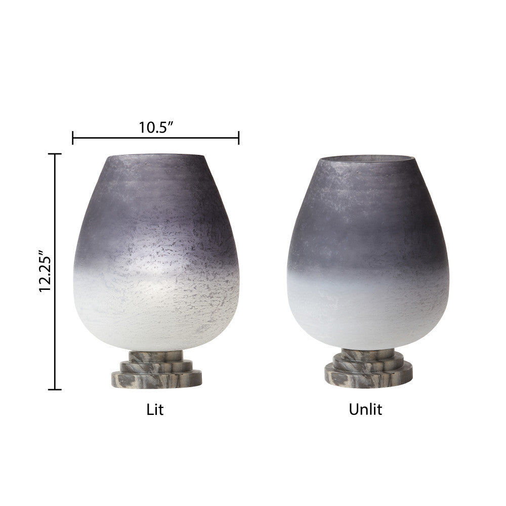 12.25" H Morgan Black/Grey/White Ombre Globe-Like Shade Accent Lamp with a Black Marble Pedestal Base