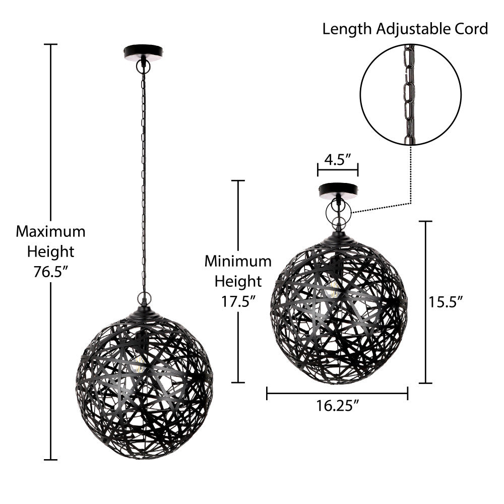 Enhance your home decor with this chic pendant light, which fuses a sense of glam, industrial and contemporary styles. With its multi-directional light, it helps to radiate warmth and ambience in every direction. Its attractive globe-shaped abstract metal shade in a black finish adds a hint of grandeur to any room, while the intricate detailing provides a modern twist. This pendant light has an adjustable height feature, allowing you to choose the ideal drop for your space, making it perfect for high or low ceilings. Impeccably handcrafted, this pendant requires one Type A incandescent, CFL, or LED bulb up to 40 watts (not included) to radiate a cozy, inviting glow.
