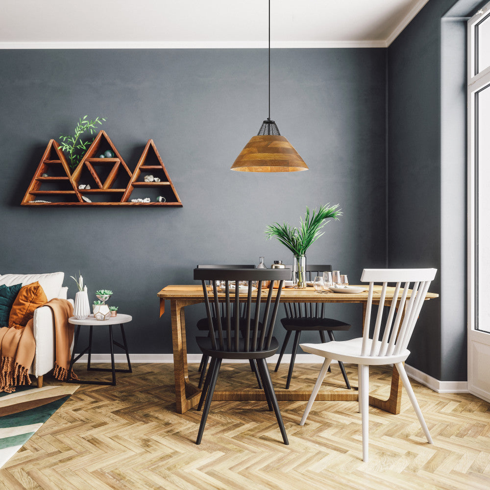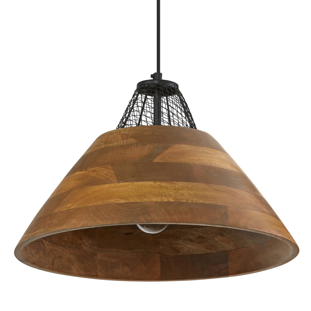 Pendant light with mango wood cone shade