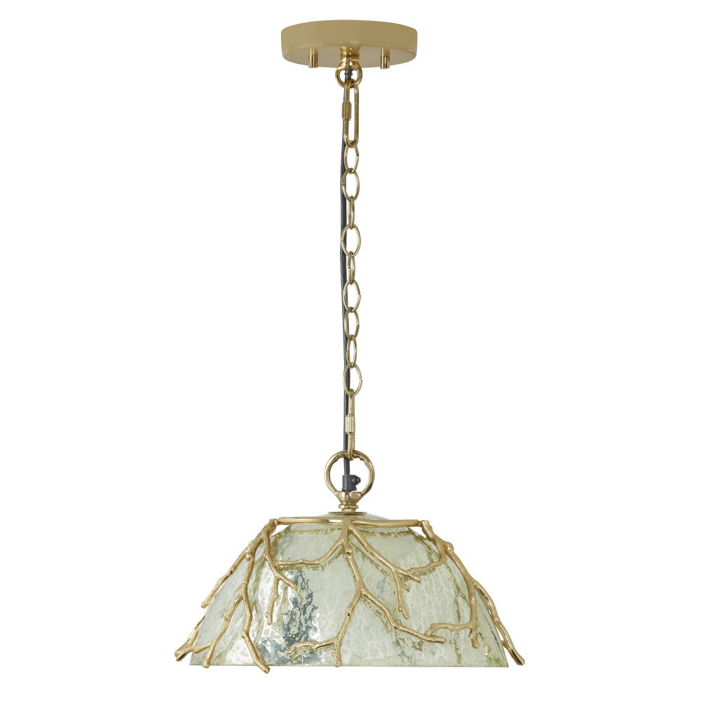 13" 1-Light Gold Metal and Silver Glass Pendant