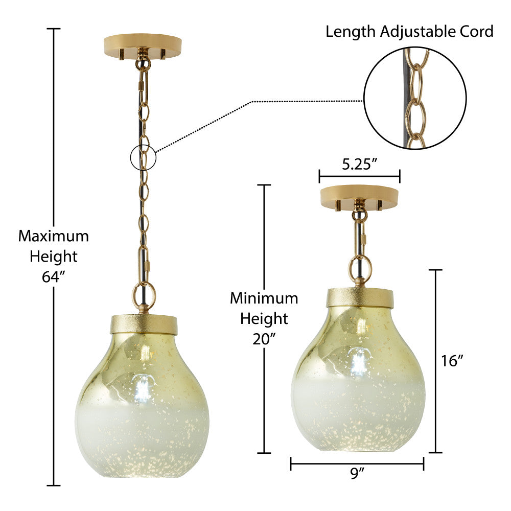 This hanging pendant light makes an excellent pairing with both modern and glam-style decor. Featuring a painted gold-finish metal canopy and a painted gold and cream ombre mercury glass bell shade for a touch of contrast, it casts soft, bright light with one 40-watt E26 bulb (not included). Plus, it also comes with an adjustable hanging cord that lets you set the height anywhere from 20 to 64 inches to best fit a variety of spaces.