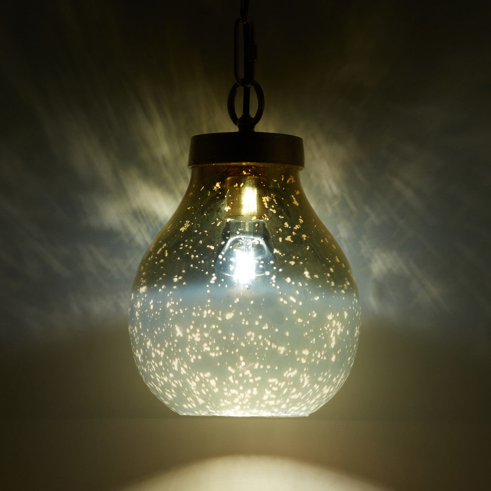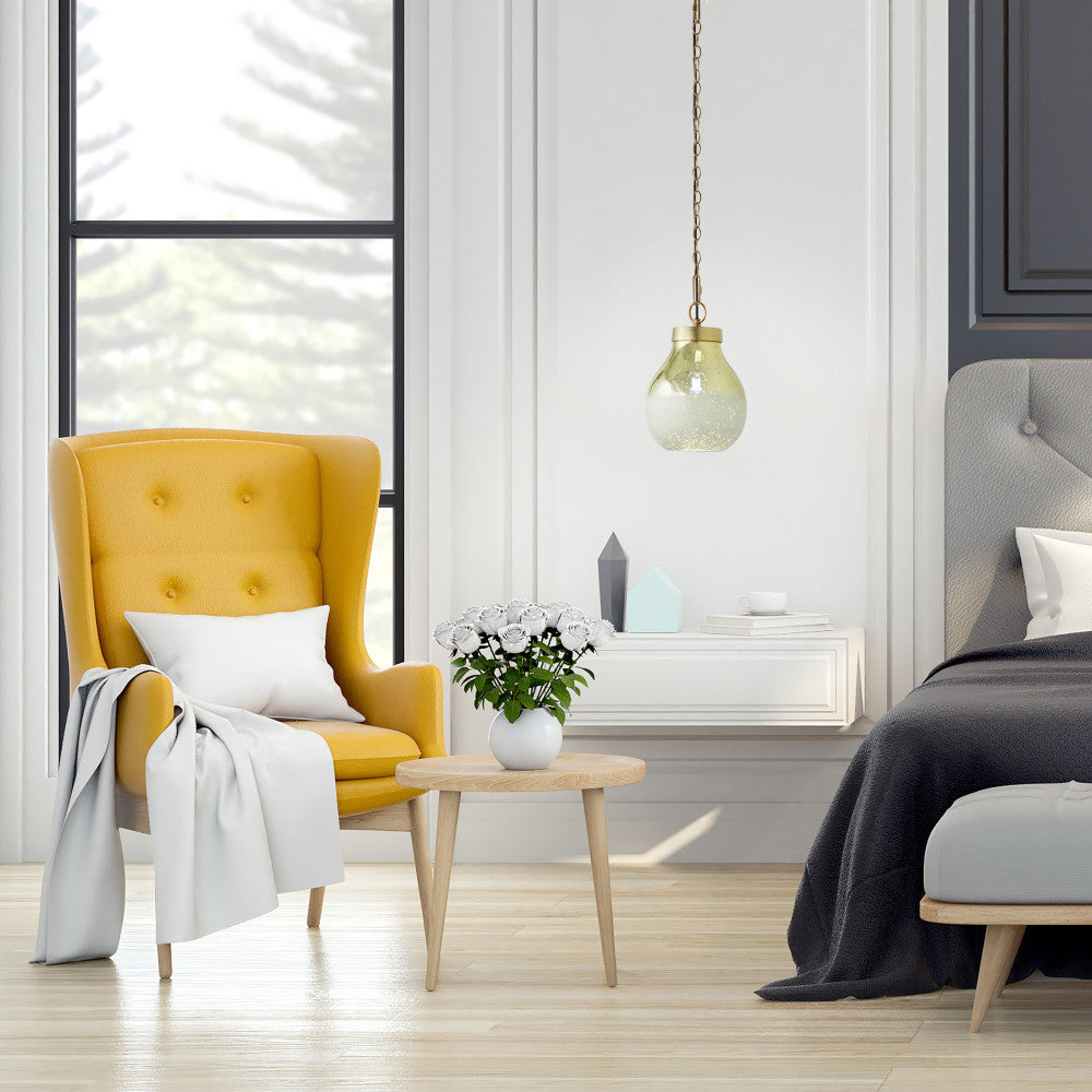 9 in. Gold 1-Light Pendant with Gold and Cream Ombre Mercury Glass Shade
