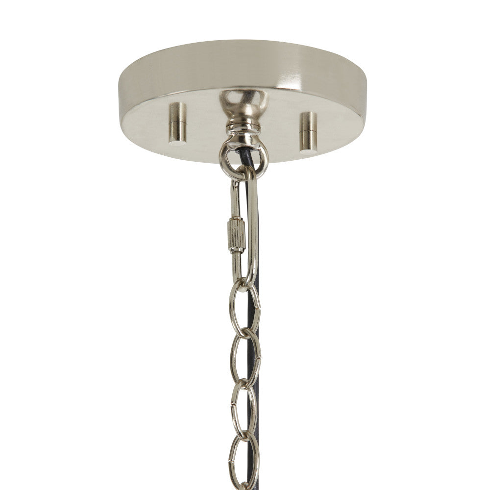 Painted nickel-finish metal canopy and painted silver mercury glass bell-shaped shade