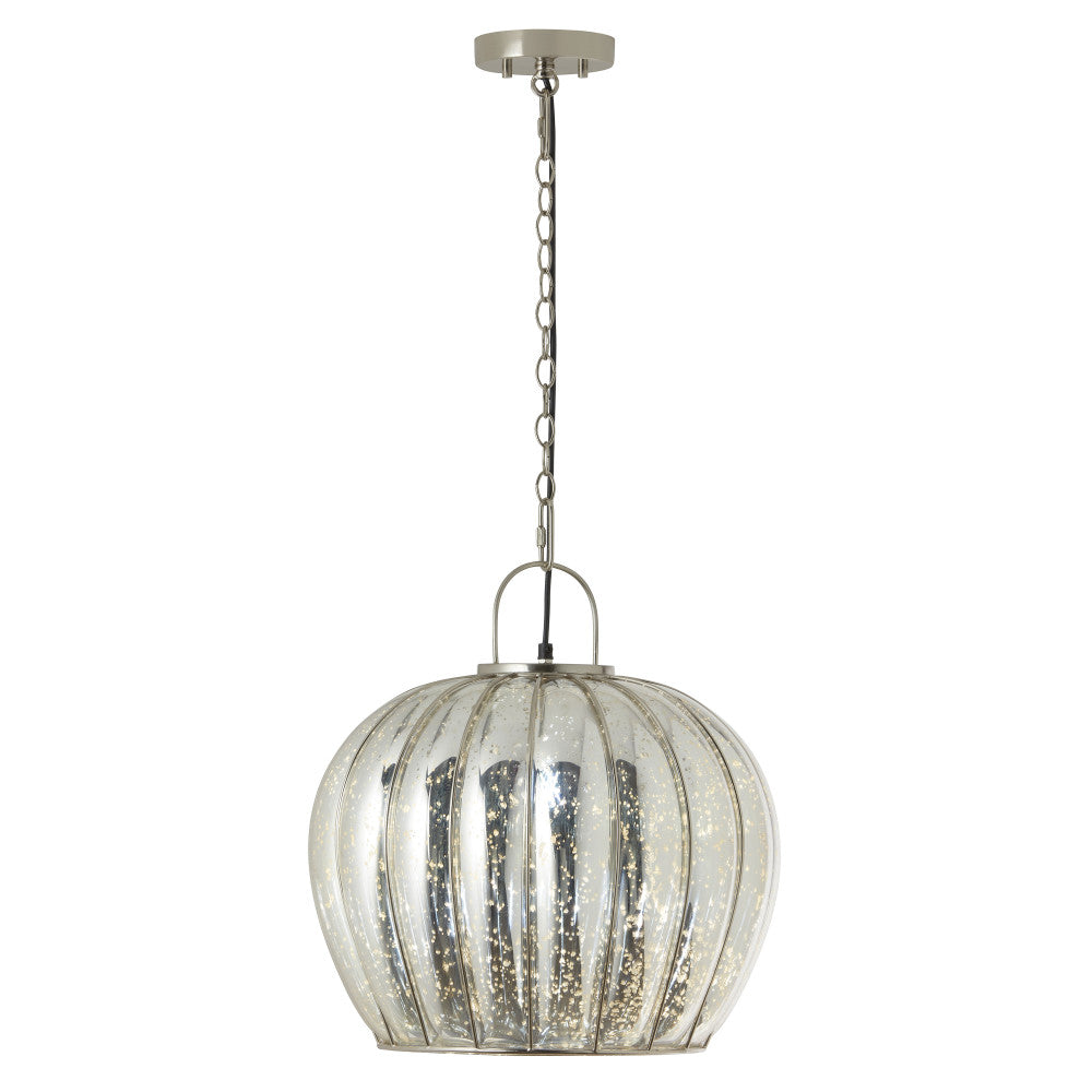 16 in. Nickel-Finish 1-Light Pendant with Silver Mercury Glass Shade