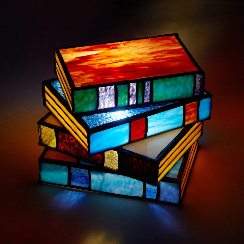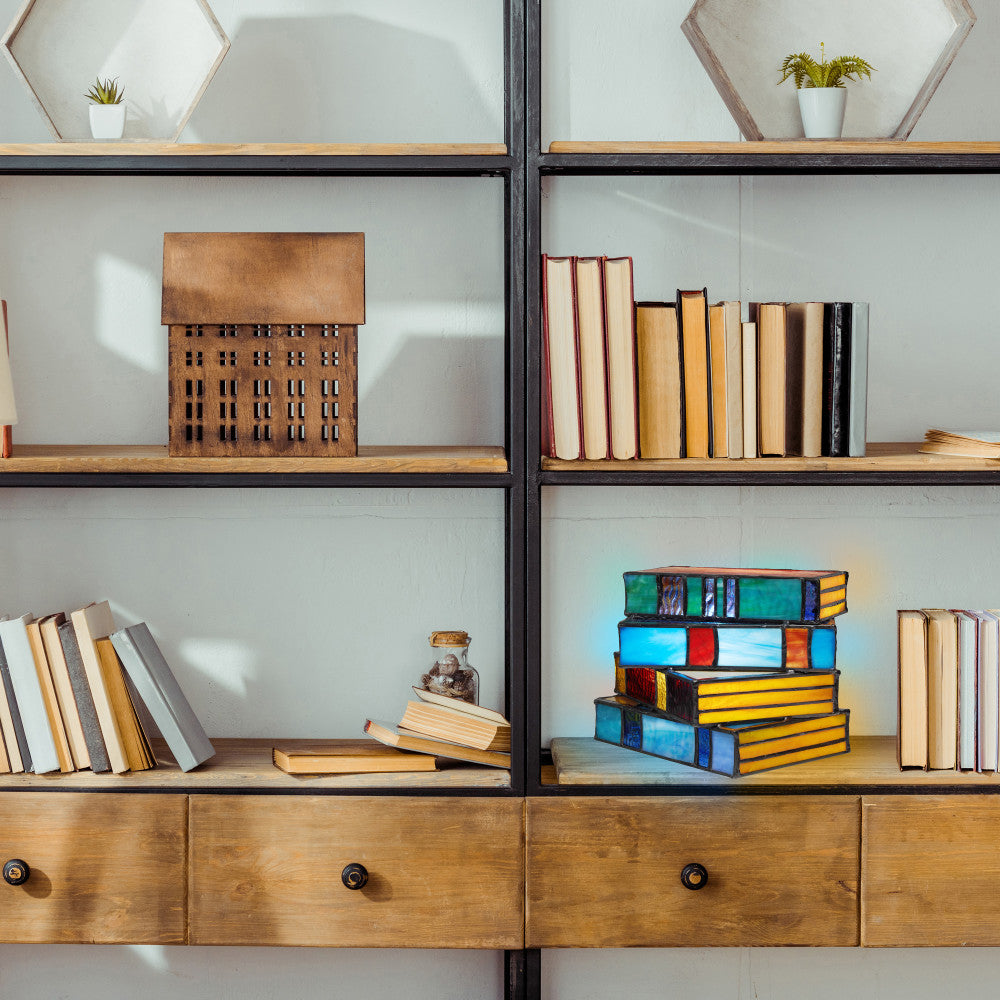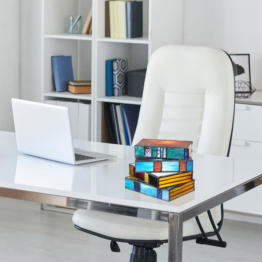 5.75" H Multi-Colored Book Stack Stained Glass Accent Lamp