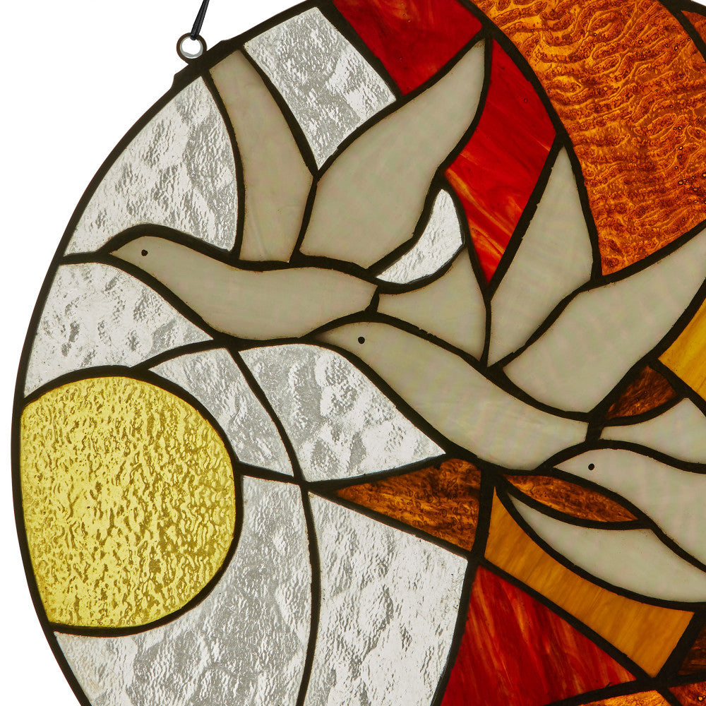 14"H Doves at Sunset Round Stained Glass Window Panel