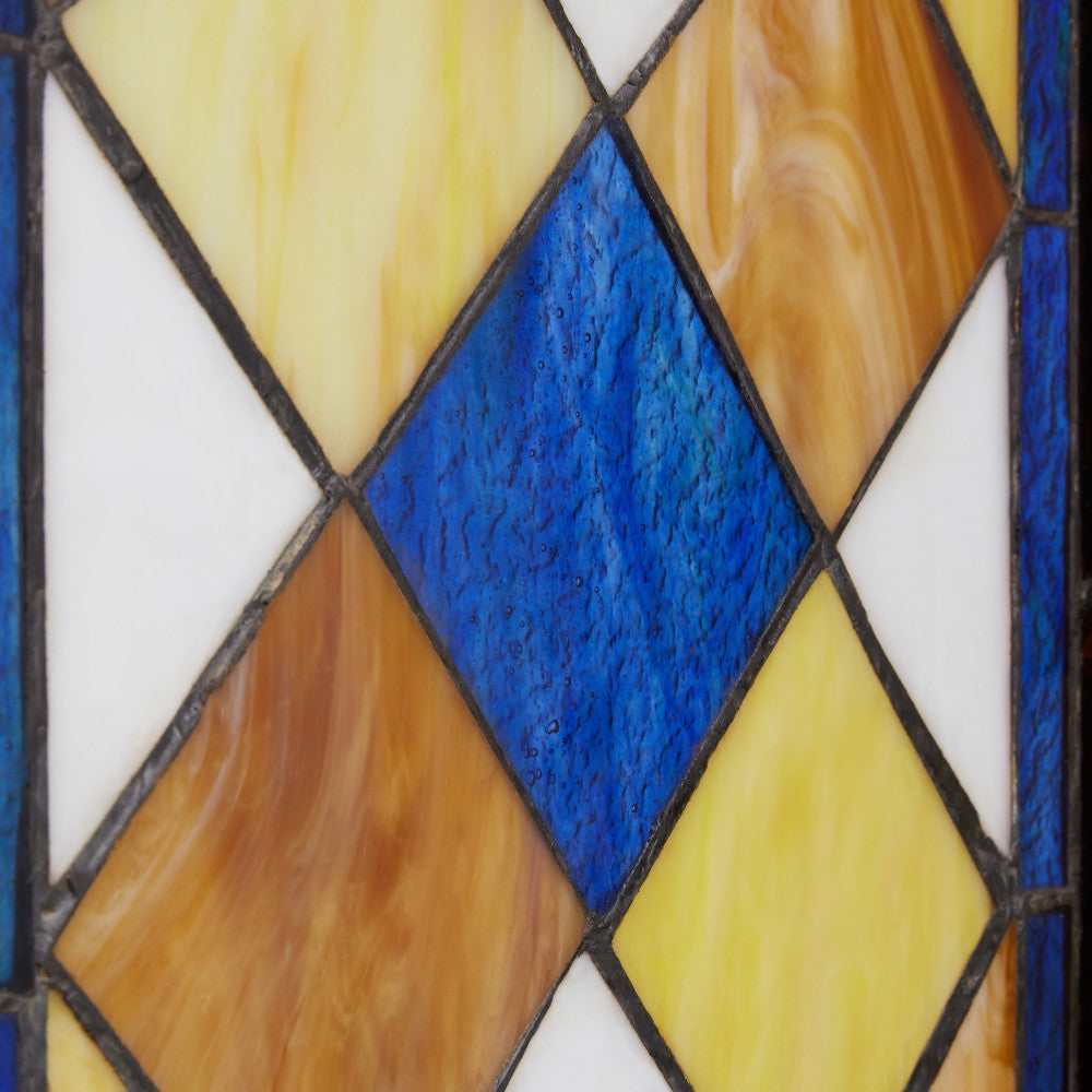 36" H Victorian Checkerboard Cathedral-Style Stained Glass Window Panel