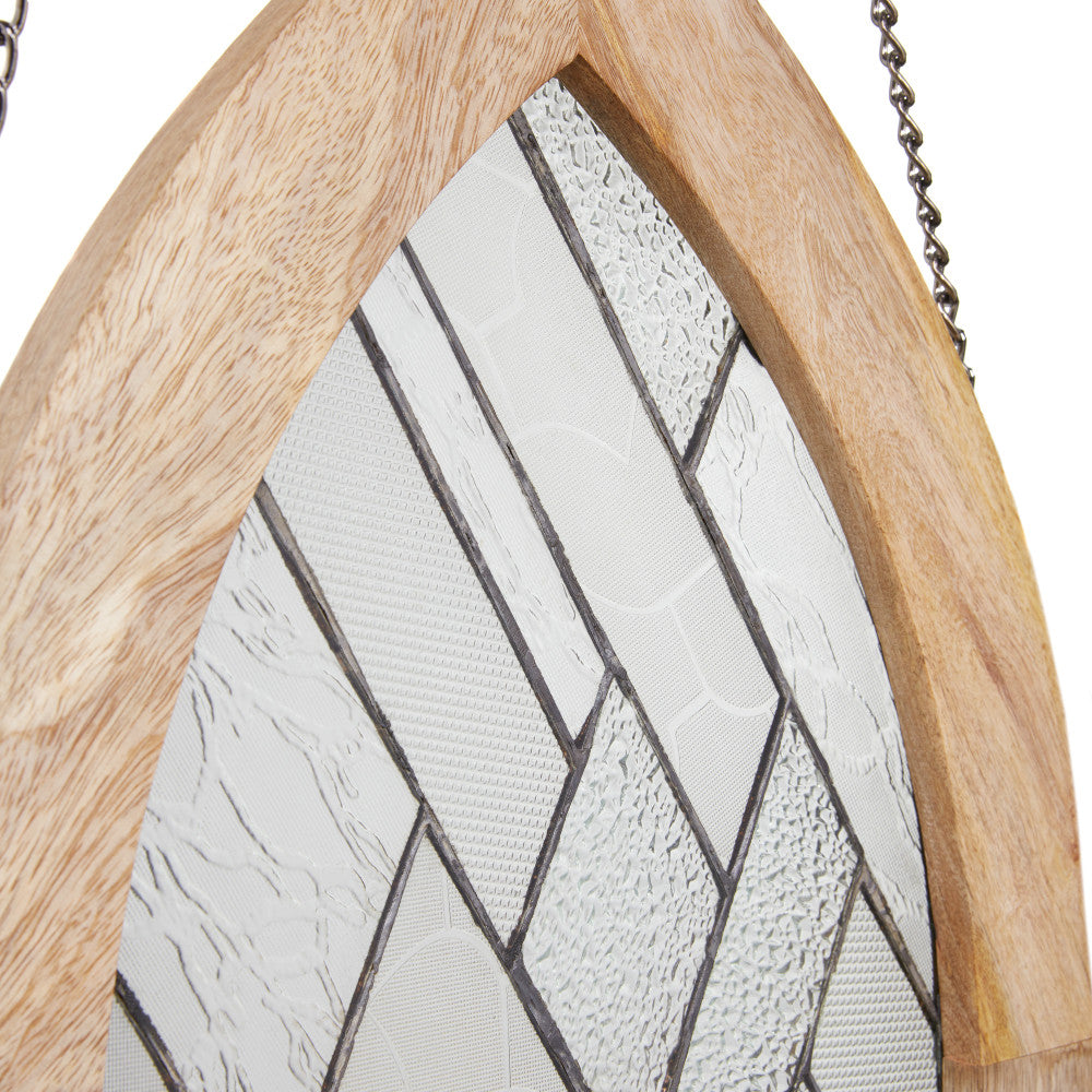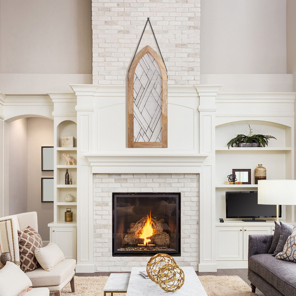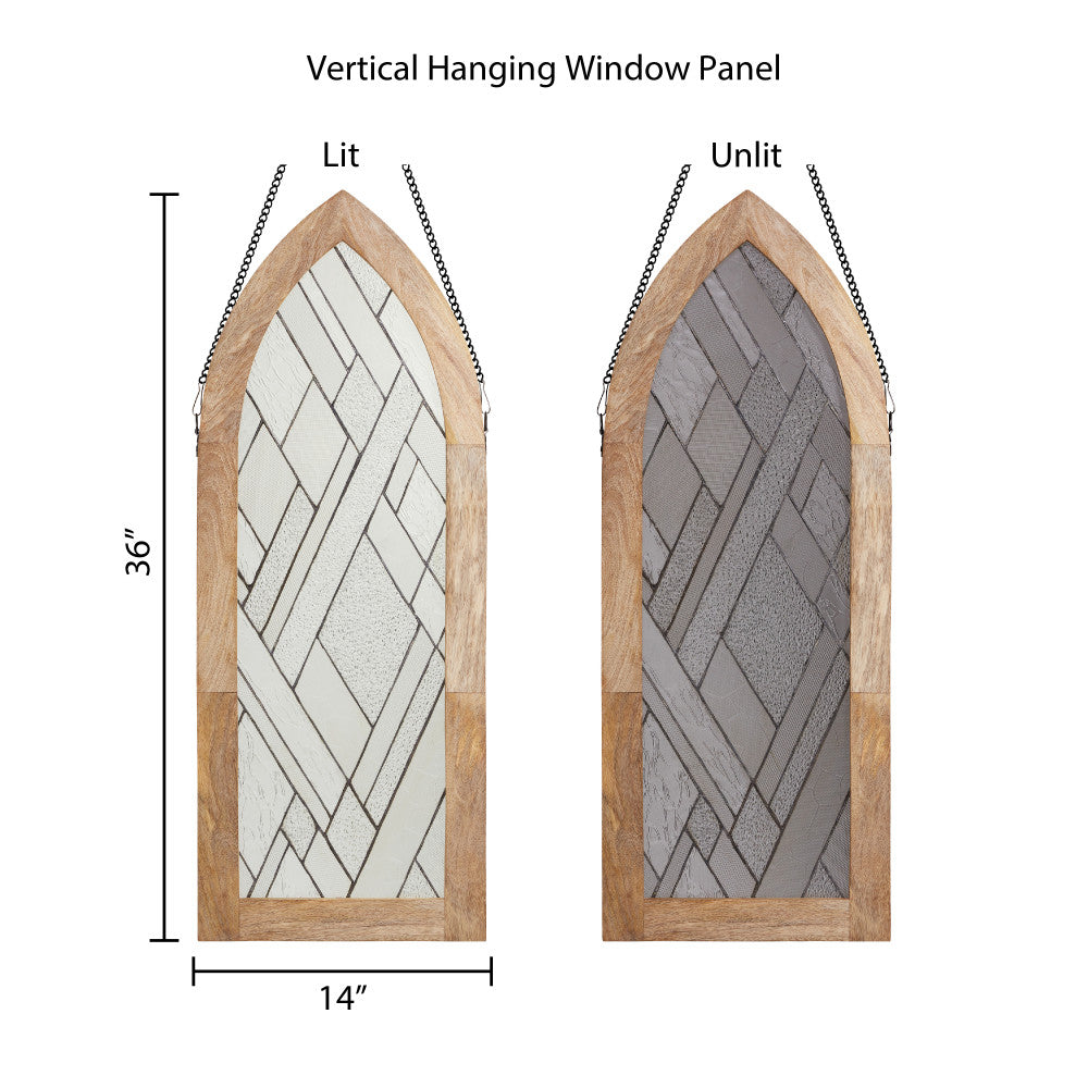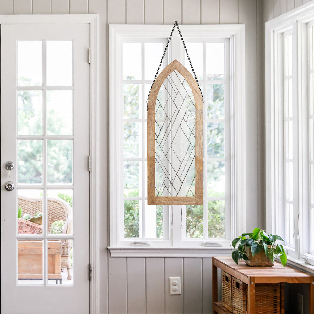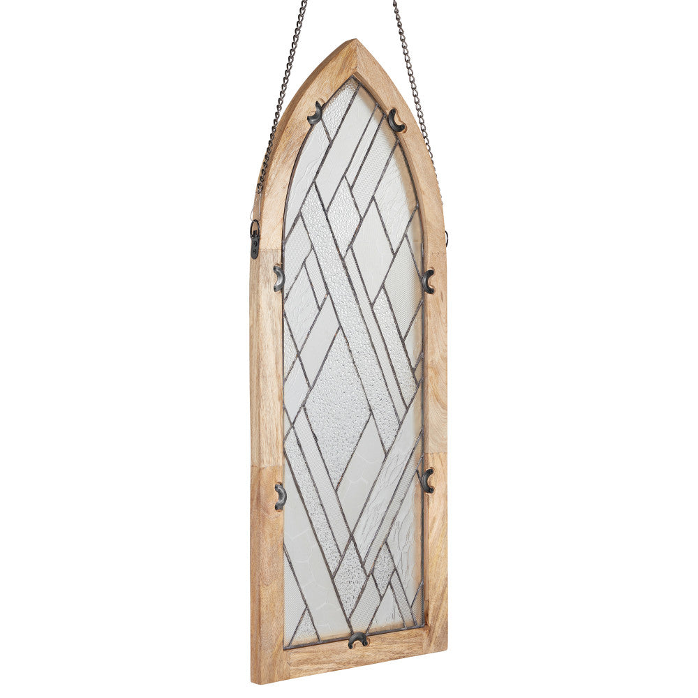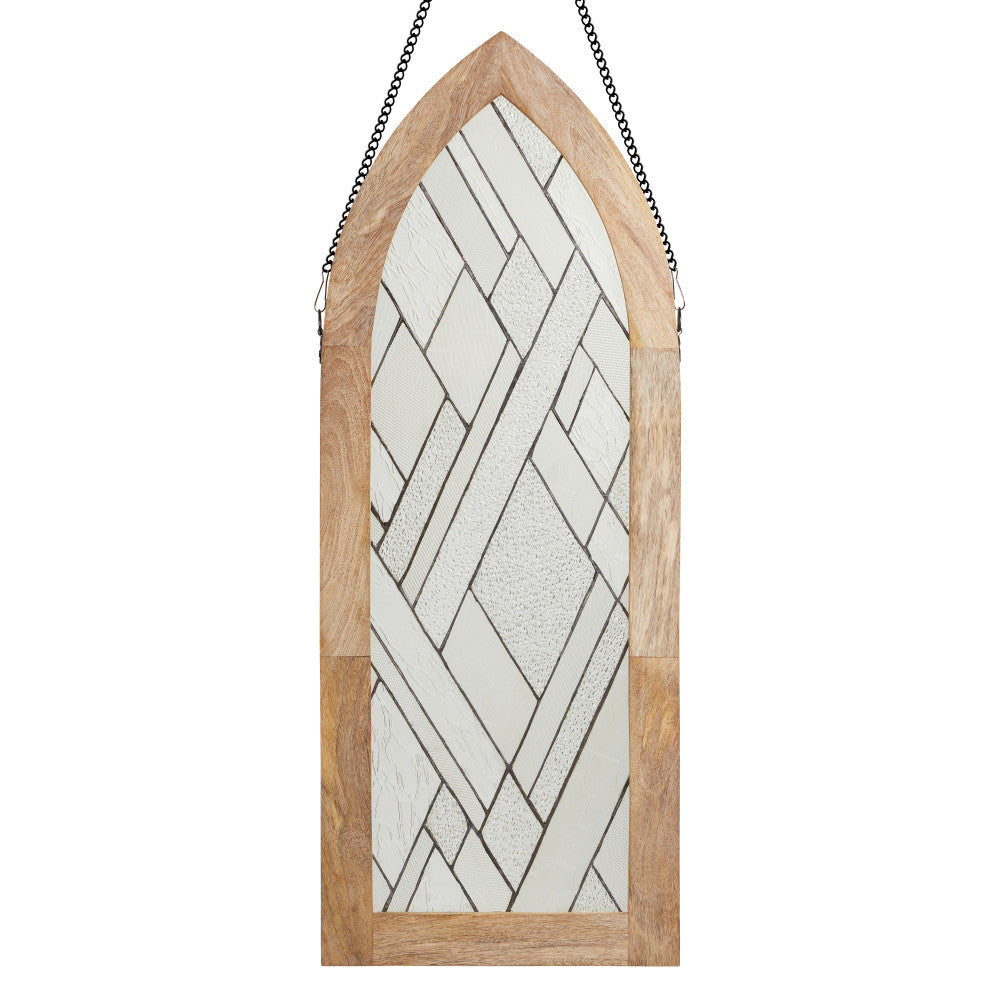36" H Cathedral Geometric Clear Glass Window Panel in Mango Wood Frame