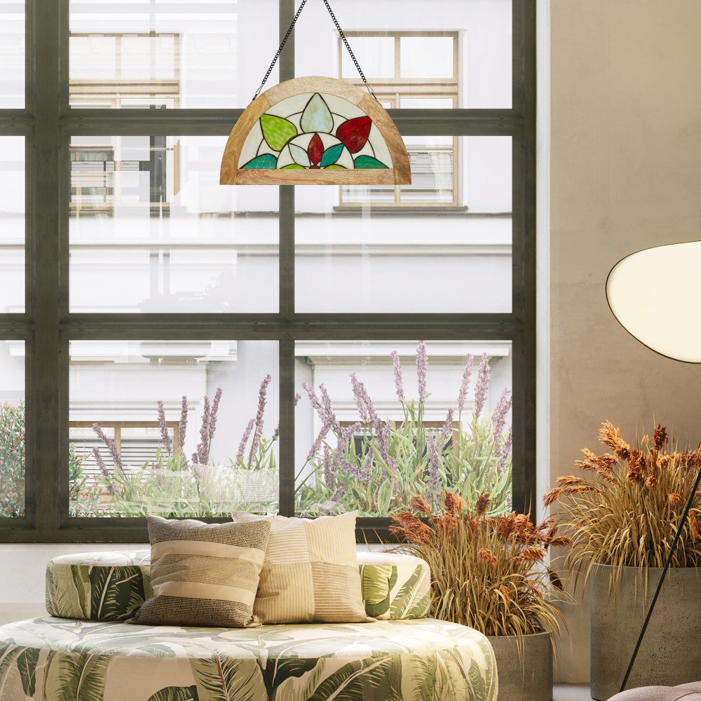 14" H Tiffany-Style Floral Stained Glass Window Panel