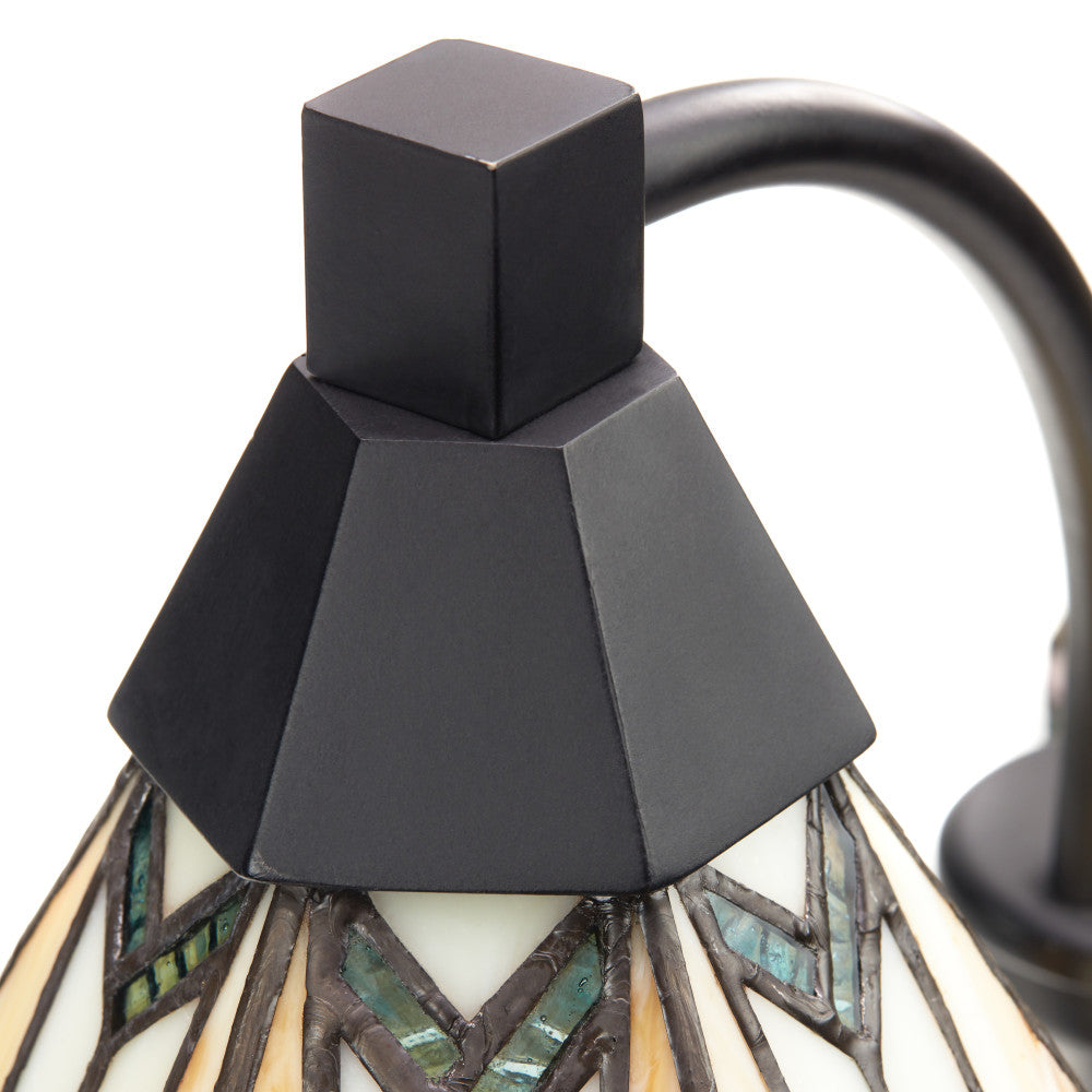 Features a metal and polyresin block base with a cone-shaped stained glass shade