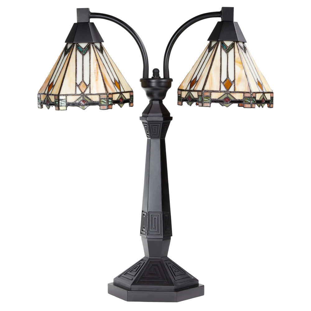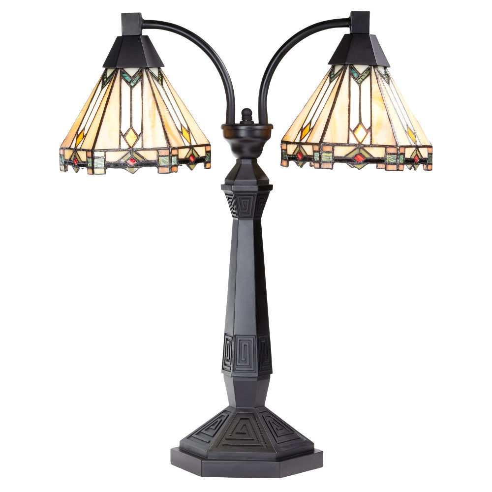 21'' H Bryant Prairie Style Stained Glass Table Lamp with Black Block Base