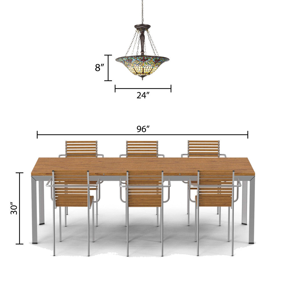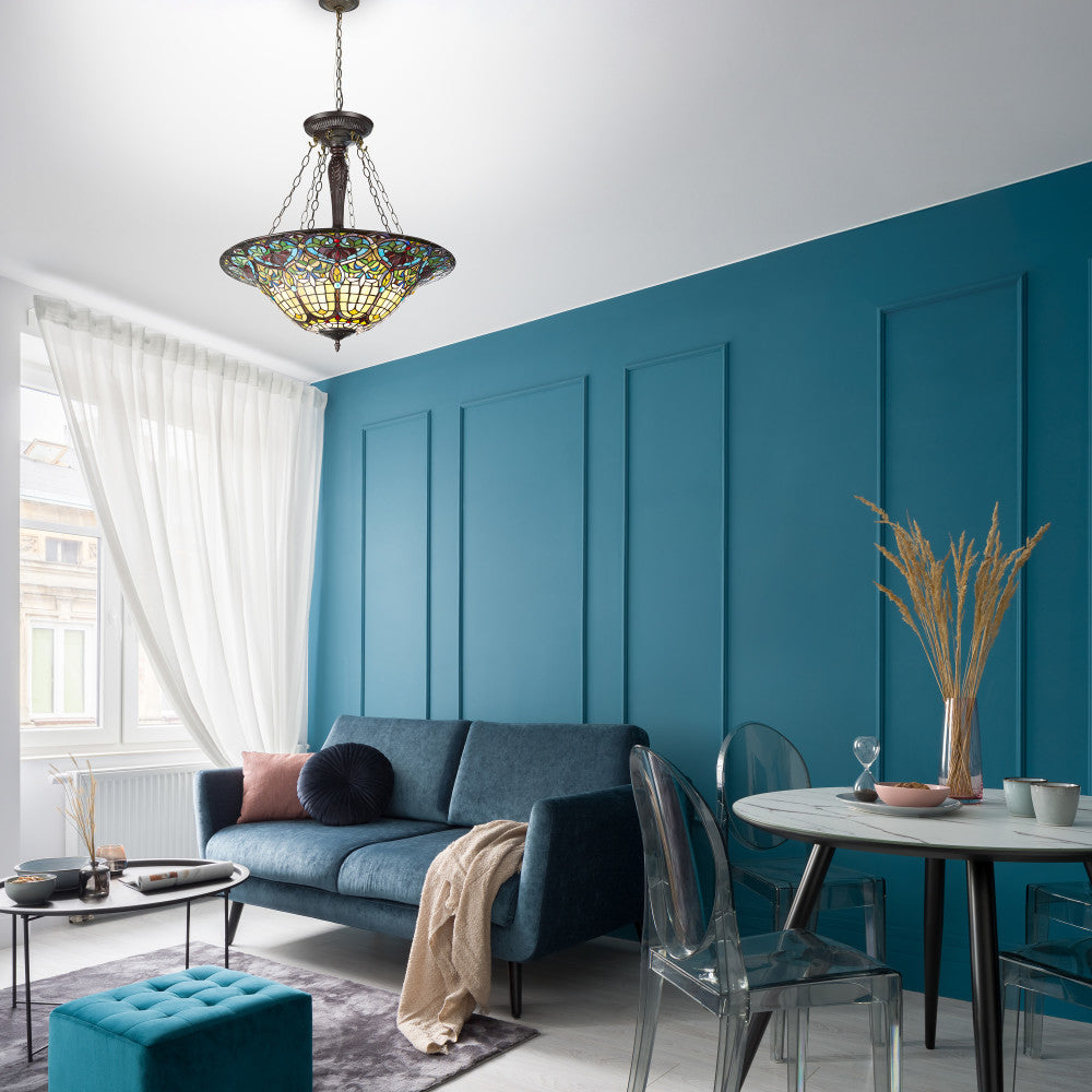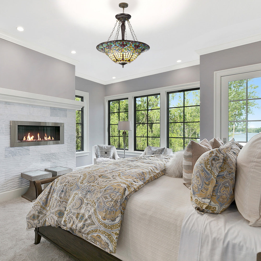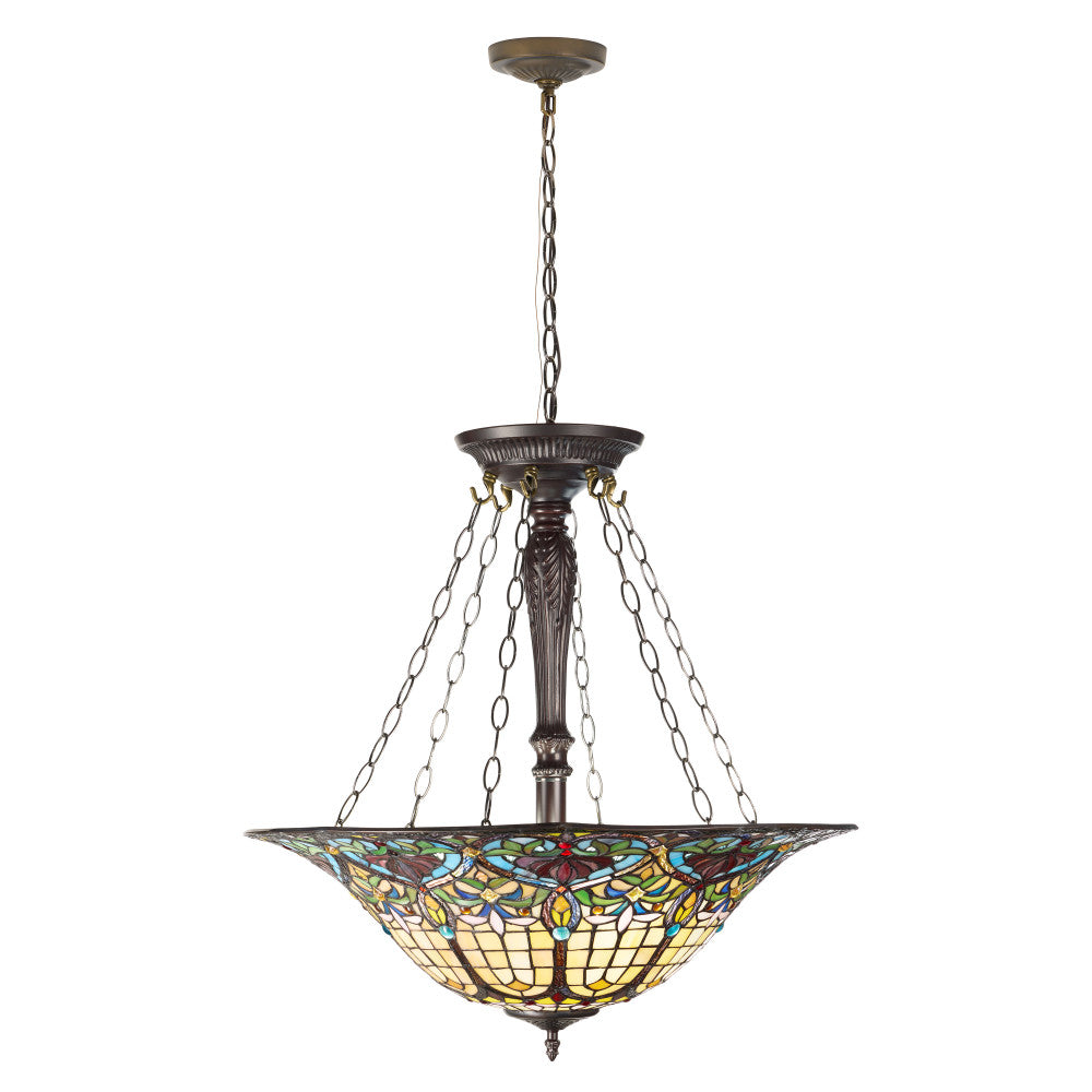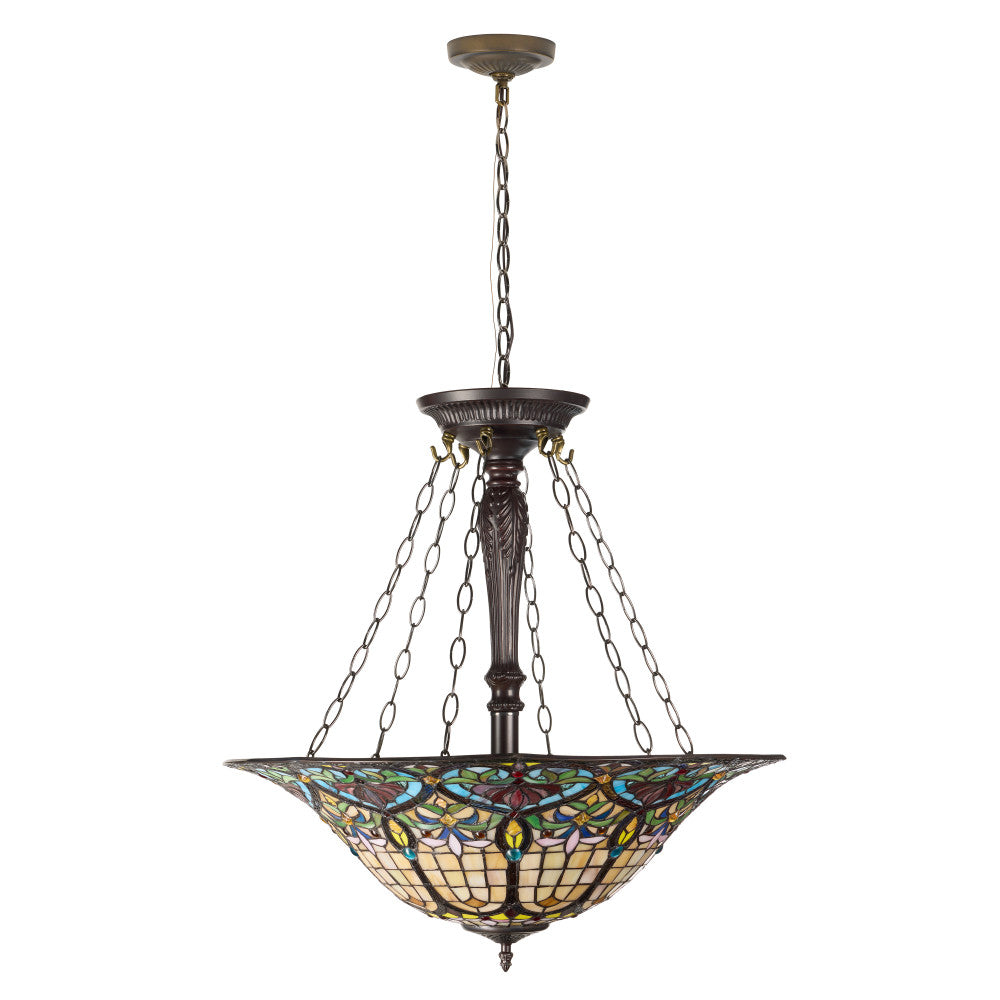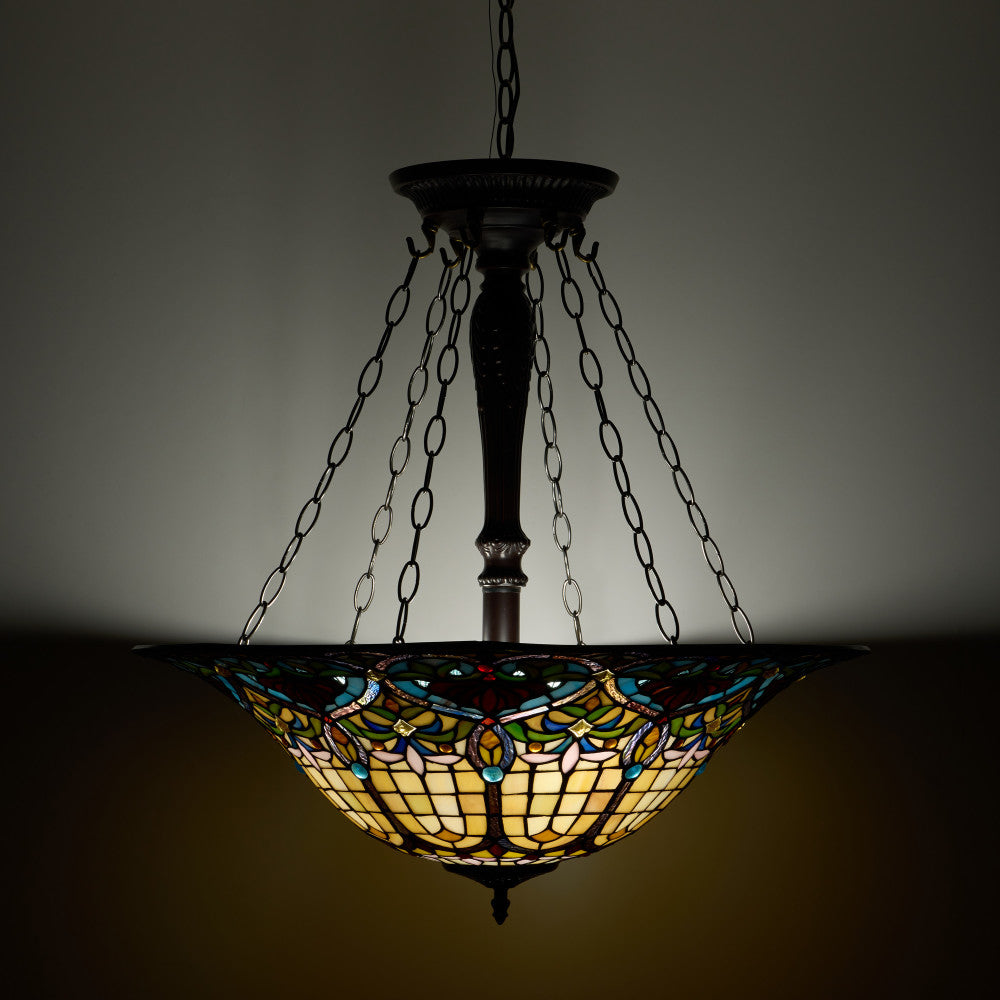 24" W Delilah Traditional Multicolor Stained Glass Bowl Shade Pendant