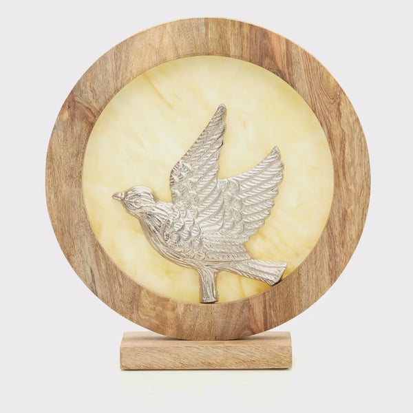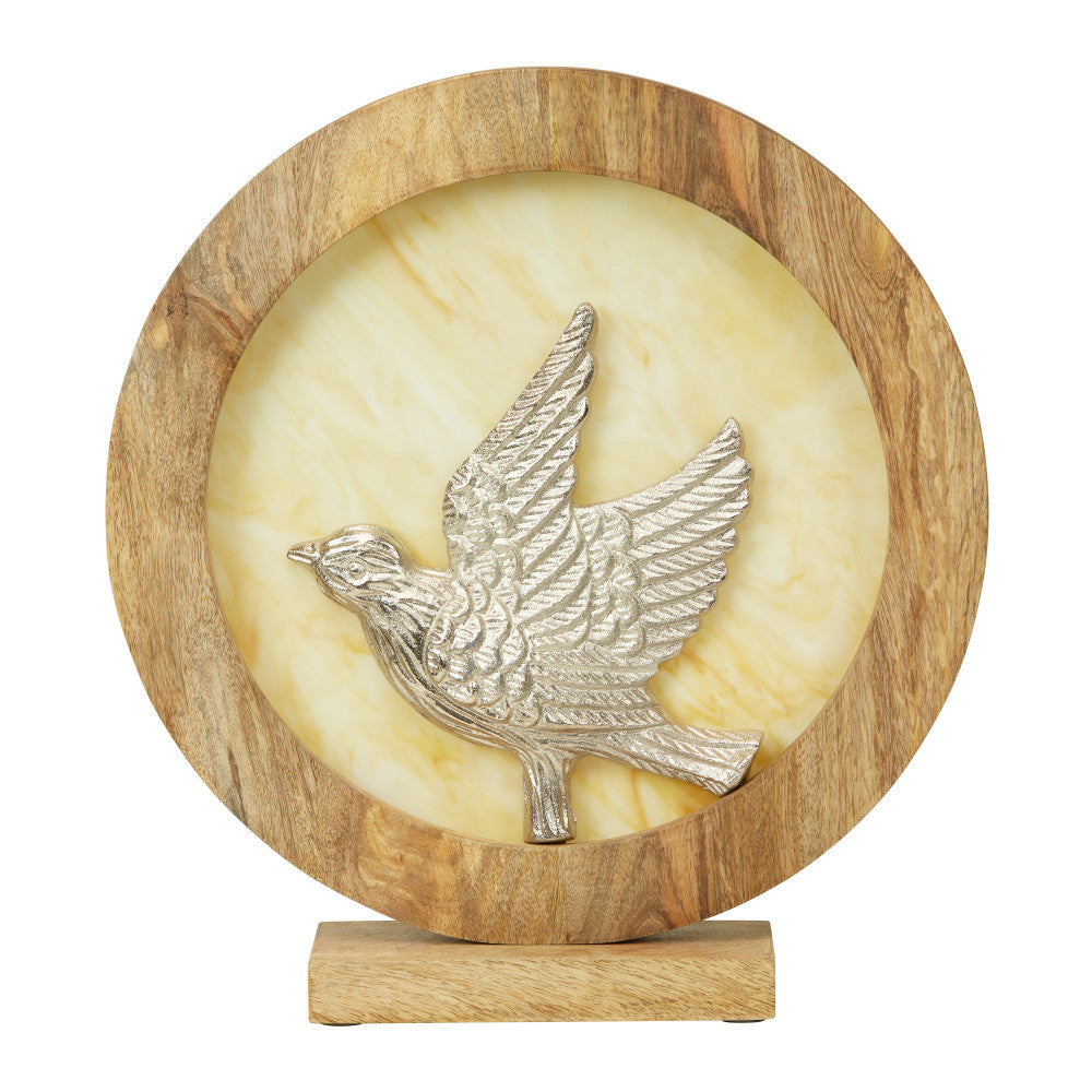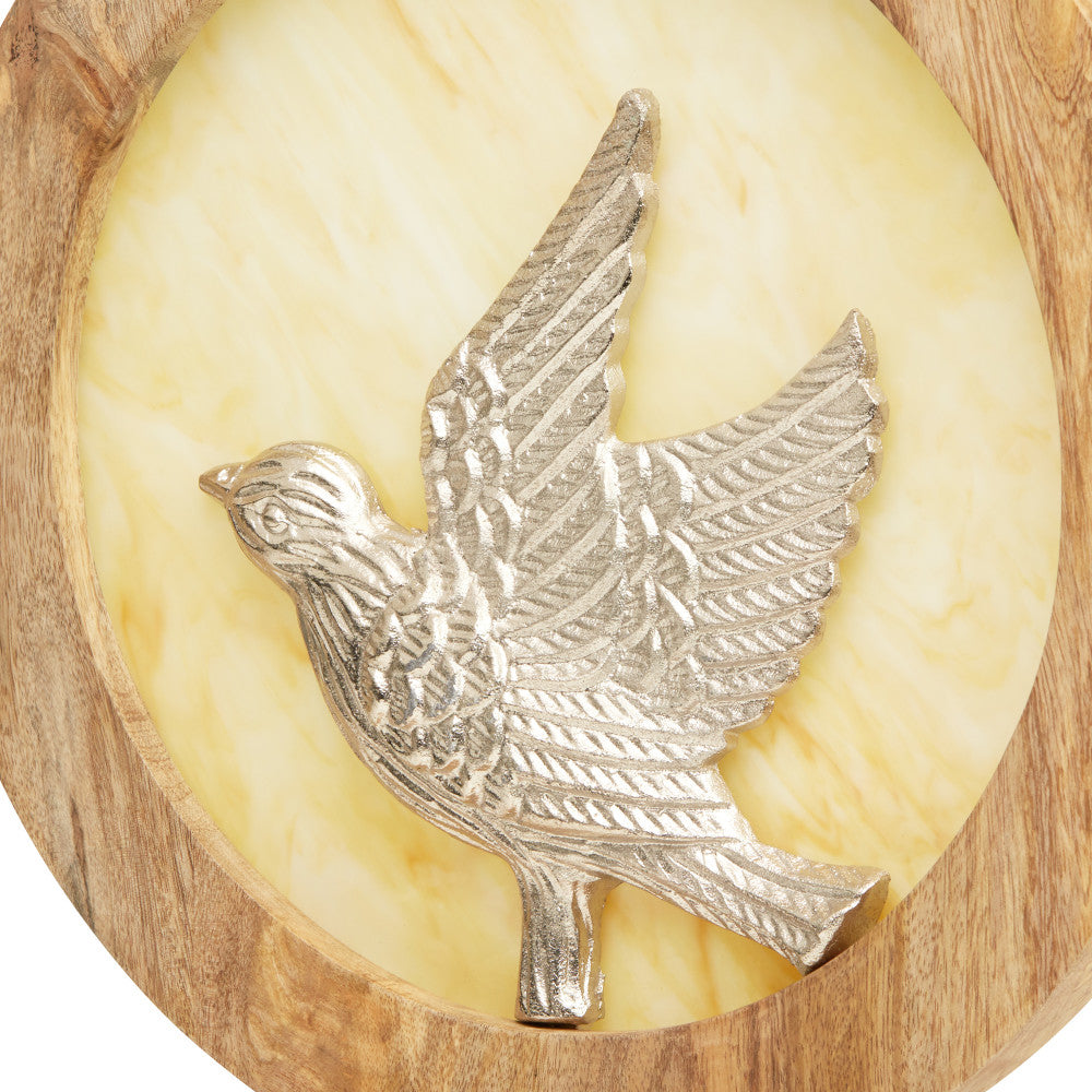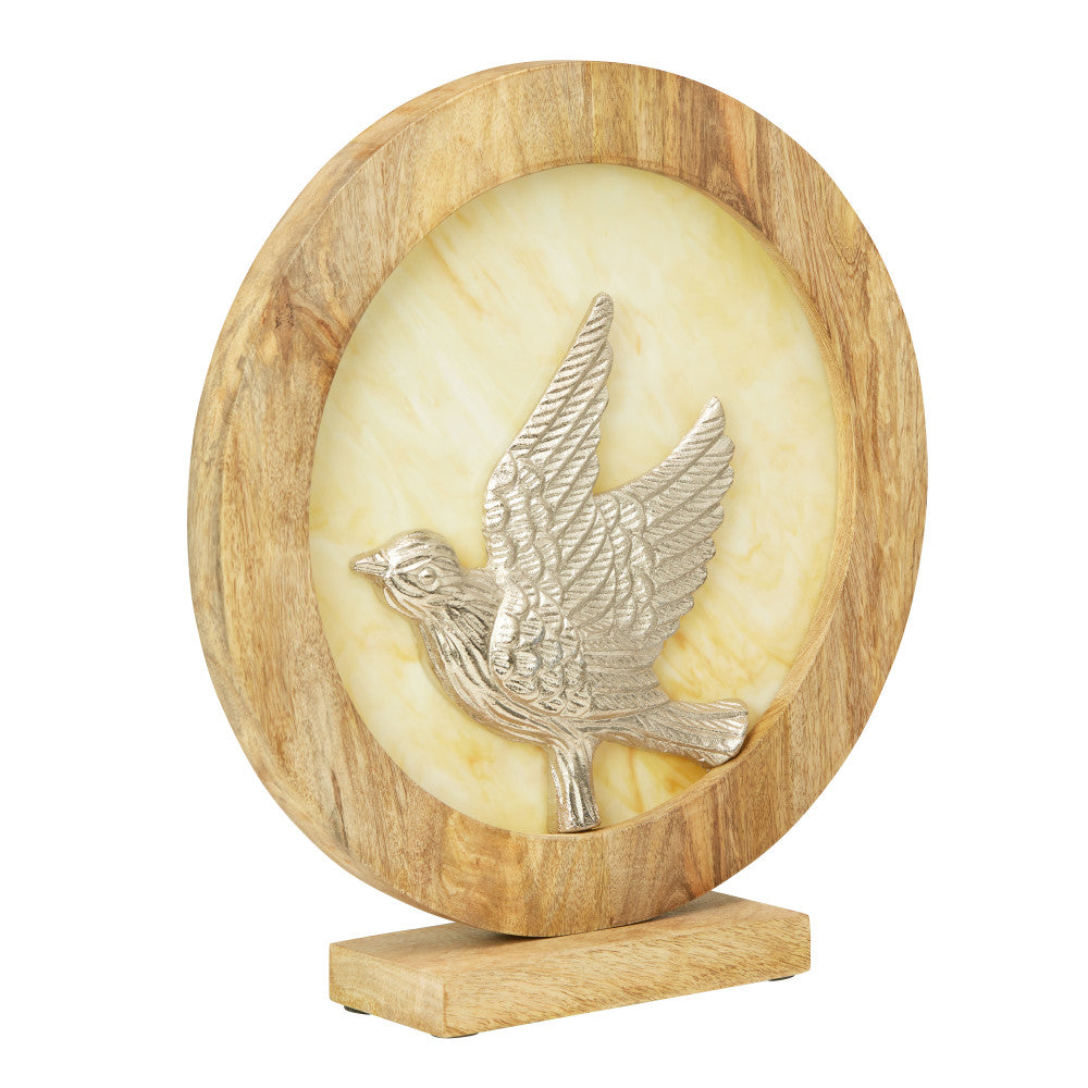 14" W Bird Theme Round Decorative Stained Glass & Metal Stand with Wood Frame