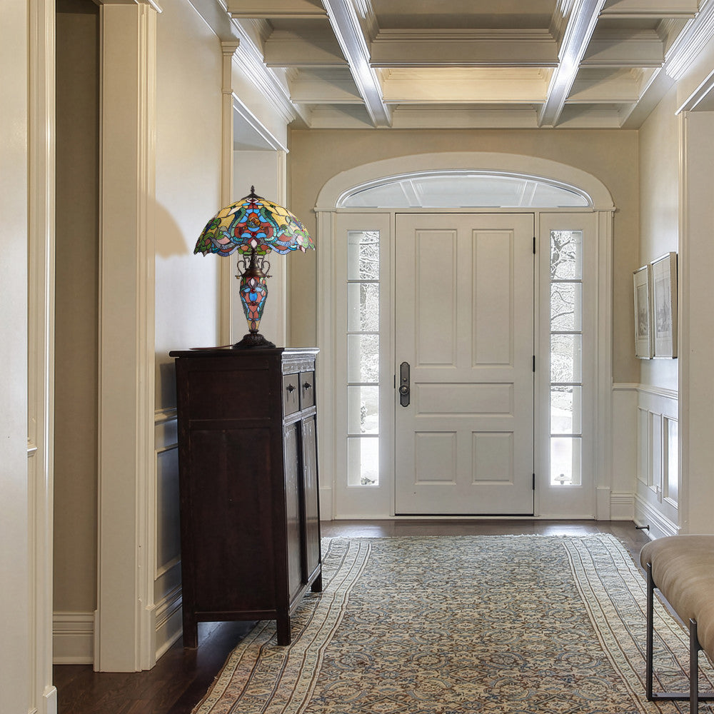 24" H Margaret Double Lit Amber Tiffany Style Stained Glass Table Lamp