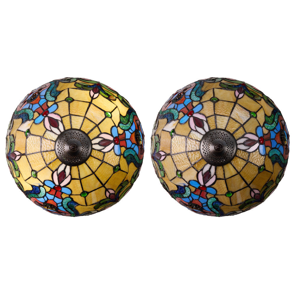 • Urn-shaped antique bronze base with bowl stained glass shade