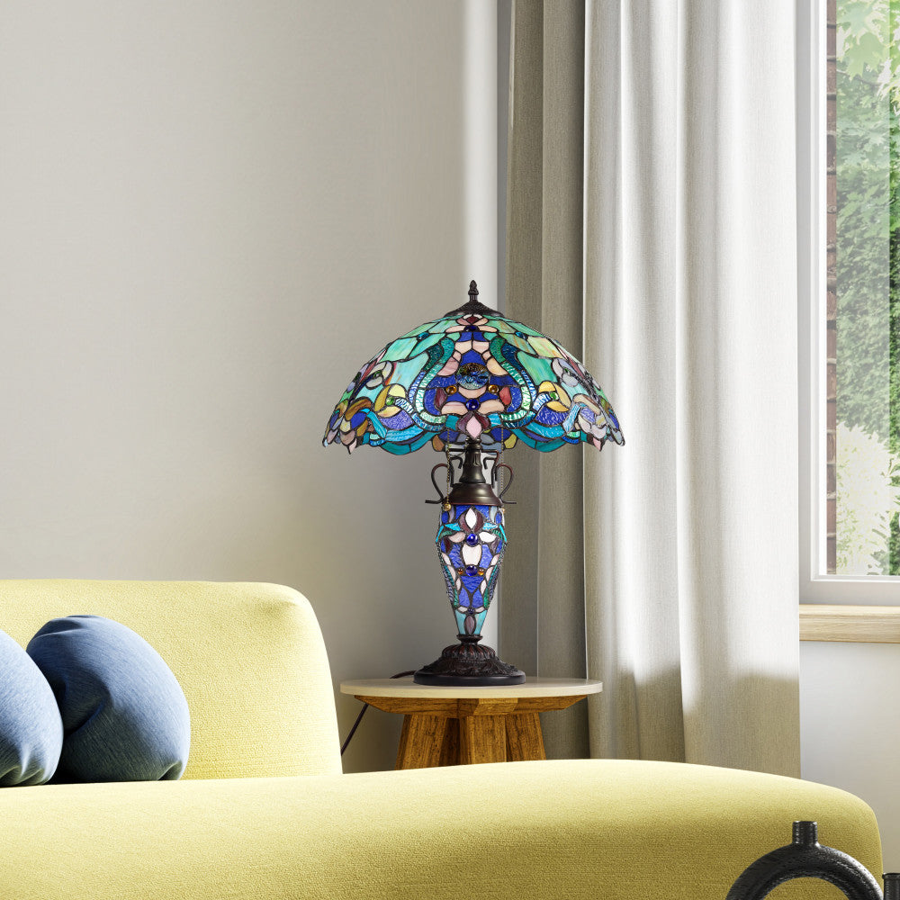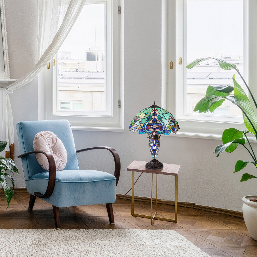 24" H Margaret Double Lit Teal Tiffany Style Stained Glass Table Lamp