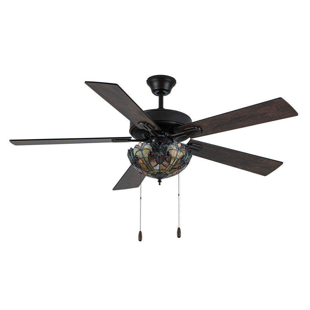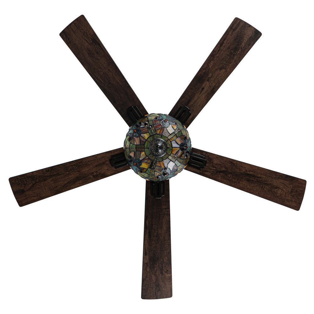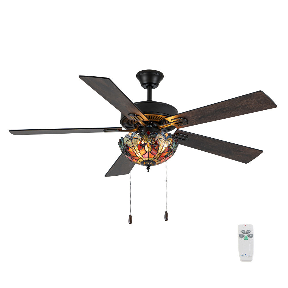 52" W Halston Indoor Tiffany Stained Glass Oil Rubbed Bronze Ceiling Fan with Remote Control