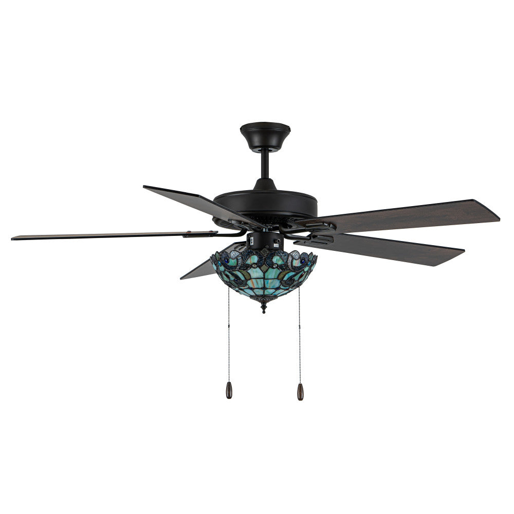 52" W Magna Carta Indoor Tiffany Stained Glass Oil Rubbed Bronze Ceiling Fan with Remote Control
