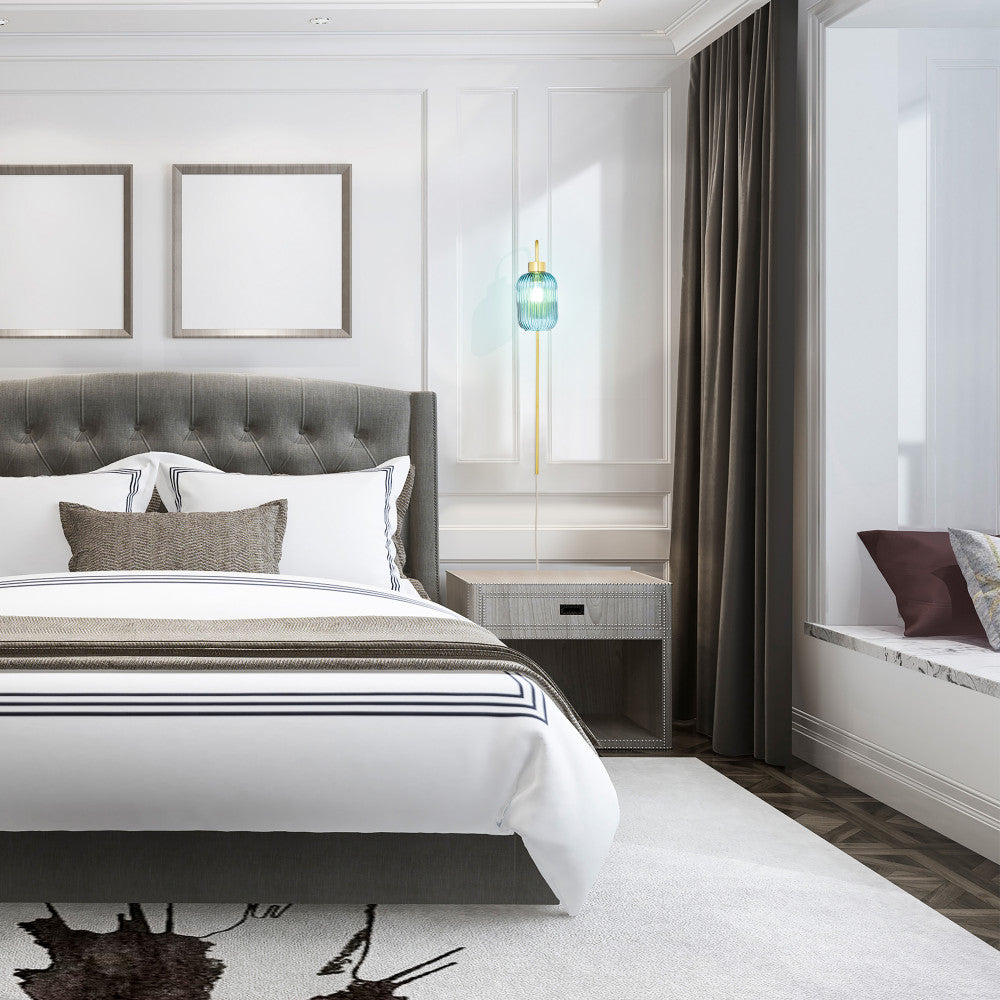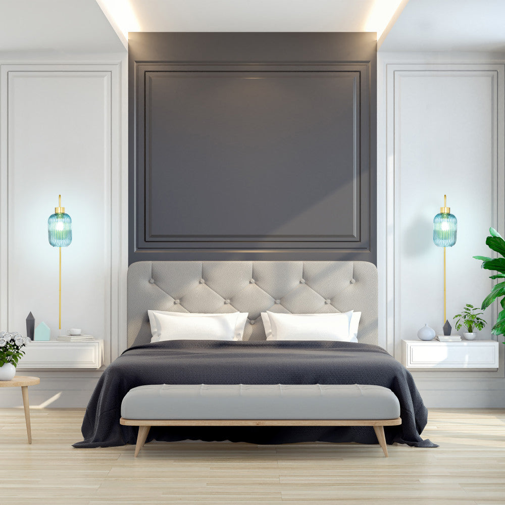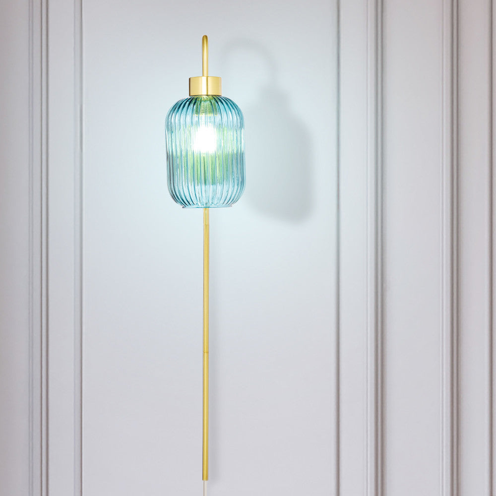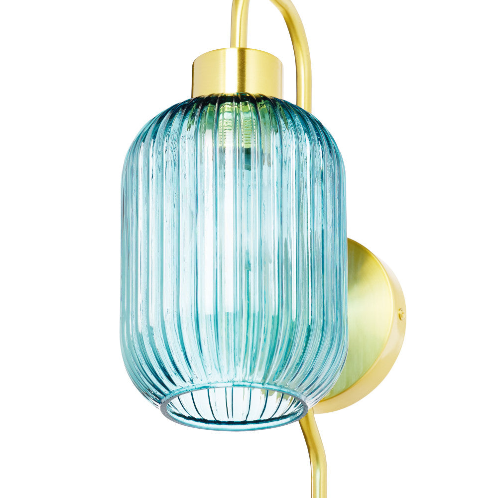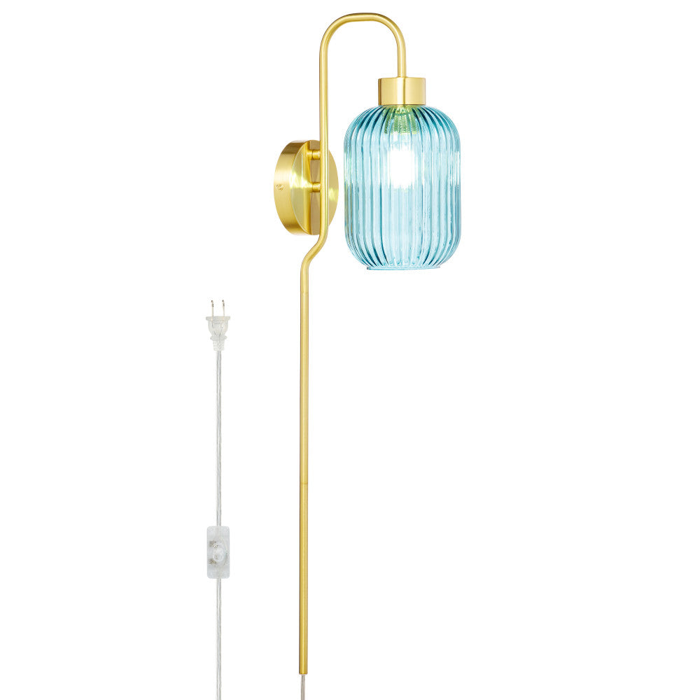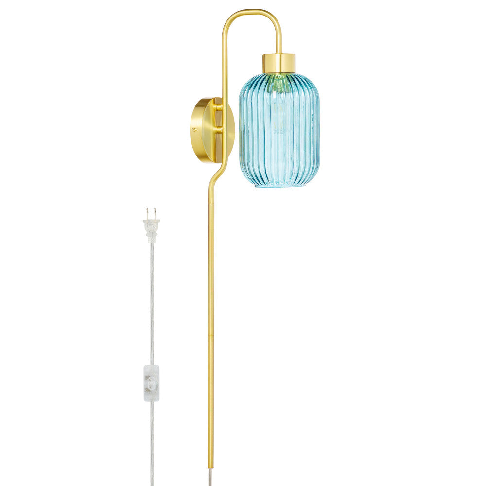 This retro-style wall sconce is just what you need to completely revamp the lighting in your hallway or entryway. Showcasing a textured blue glass globe shade and a gold-finish metal cord hider, this sconce offers a striking look with a touch of contrast. It beautifully illuminates your indoor spaces with a 40-watt E26 bulb (not included) and is also LED compatible — and thanks to the 144-inch cord with an in-line switch, it's easy to hang from any wall.