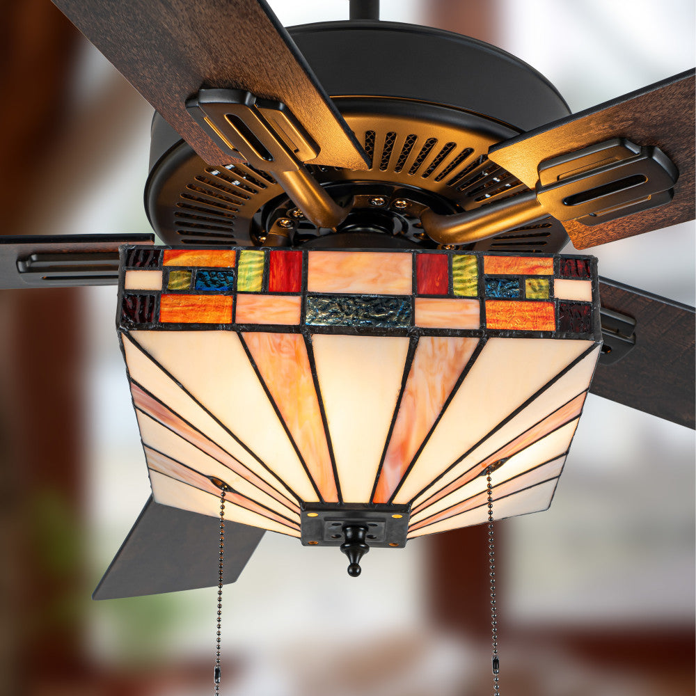 52" W Kyle Indoor Tiffany Stained Glass Ceiling Fan with Remote Control